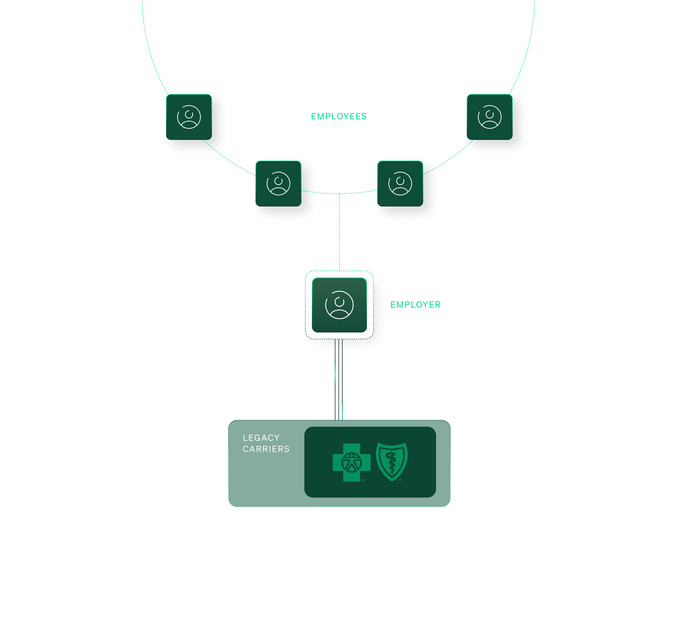 Most people get health insurance through their employer. And most employers don't have much choice. They are stuck picking between a handful of large carriers: the Blues, United, Cigna, Aetna.